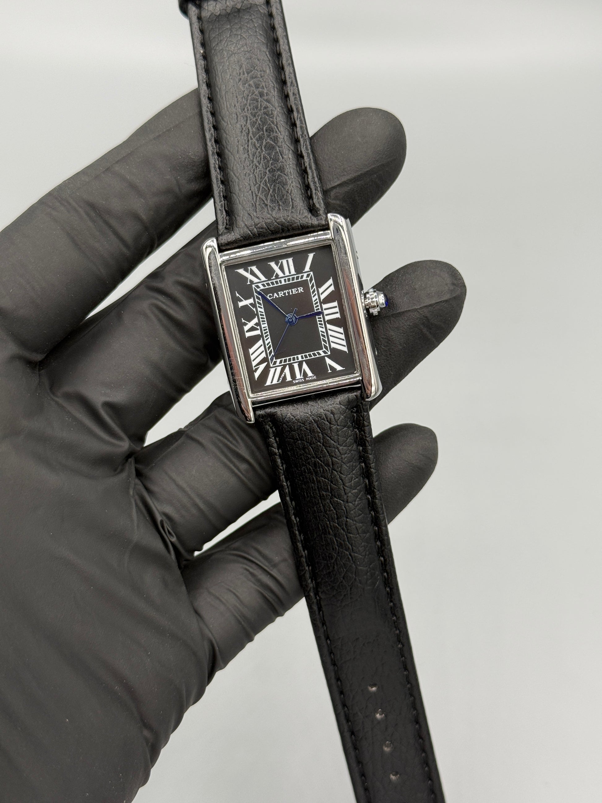 Cartier Tank Watch Roman Numerals Leather Strap